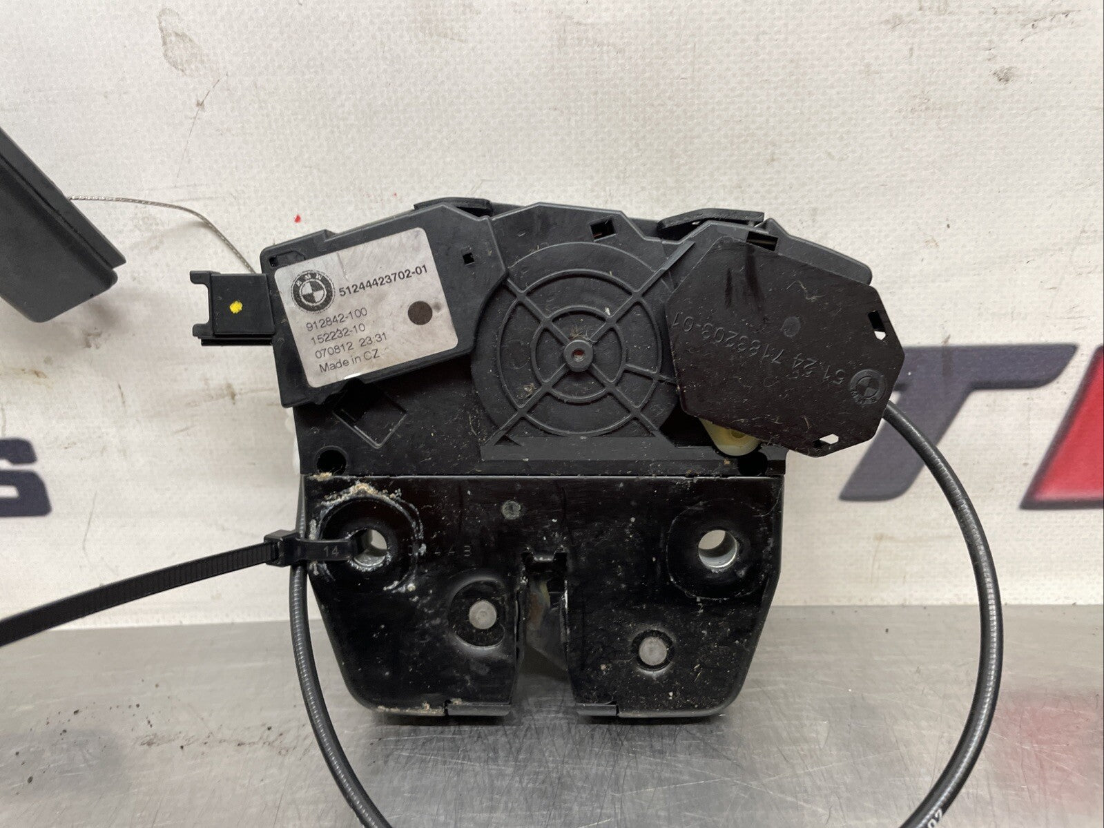 The product is a BMW X5 E70 M-Sport 3.0D Tailgate Lock Mechanism with manufacturer part number 51244423702, designed for the 2007 model. It is a genuine BMW part specifically made for this vehicle model.